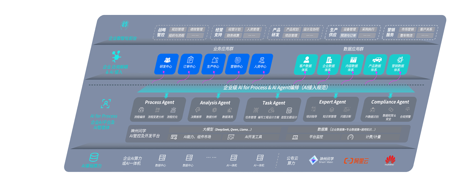 端到端的一站式AI工作空间深度融合了从企业战略规划到日常经营的全流程业务板块,,,,定向解决车企内部领域多、、部门多、、、、链条长、、、场景碎片化等难题,,,,支持车企快速构建以AI为核心的生产力写作体系,,,实现任务执行与AI能力的无缝集成与交互